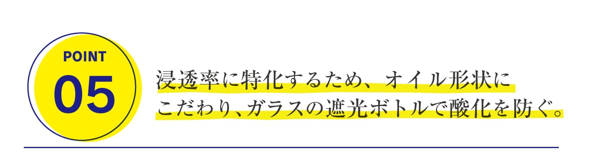 シンプルで良いものだけを追求した内容成分にこだわるからこそ、余分なパッケージは廃止しました。浸透率に特化していくためにオイル形状にこだわった美容液です。天然素材のみで保存料を使用しない為、酸化しにくい遮光ボトルのガラス瓶でお届けします。お肌の乾燥具合や使用部位によって使用料を調整しやすいようにスポイト状にし、一滴一滴をお楽しみいただけると思います。